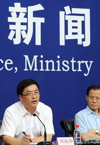 8月13日,衛(wèi)生部新聞發(fā)言人鄧海華(左)在回答記者提問。8月13日,在衛(wèi)生部舉行的例行新聞發(fā)布會上,衛(wèi)生部食品安全與衛(wèi)生監(jiān)督局局長蘇志介紹,《預(yù)包裝食品營養(yǎng)標簽通則》將于2013年1月1日正式施行,這標志著我國全面推行食品營養(yǎng)標簽管理制度,對指導(dǎo)公眾合理選擇食品,促進膳食營養(yǎng)平衡,降低慢性非傳染性疾病風險具有重要意義。新華社記者 何俊昌 攝